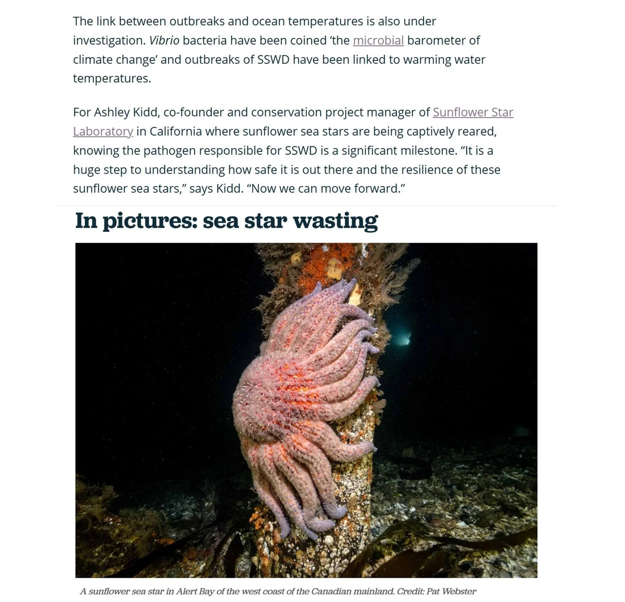 Billions of giant sea stars are dying 11 Sept Written By Becci Jewell This article can be found here. Becci Jewell